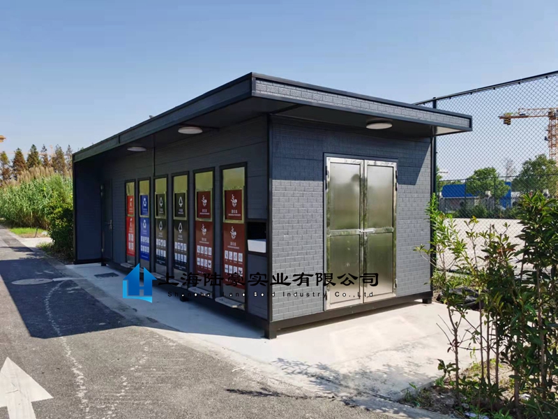 產(chǎn)品編號(hào):垃圾房C-45(大型垃圾分類收集房) 規(guī)格尺寸:8.0*3.0*2.8米(可定制各種規(guī)格) 制作工藝:鋼結(jié)構(gòu)龍骨焊接一體成型,外墻為金屬雕花板